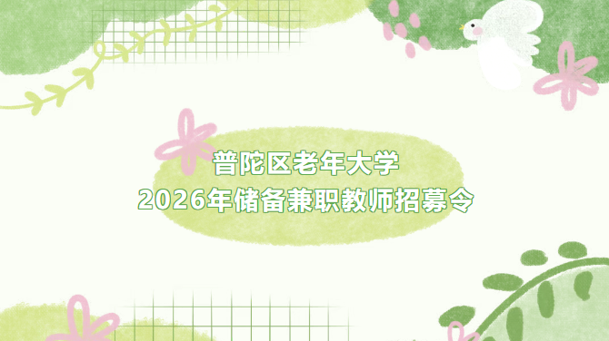 【老年教育】银龄课堂,“师”不可挡!您就是我们正在寻找的“宝藏老师”——普陀区老年大学2026年储备兼职教师招募令
